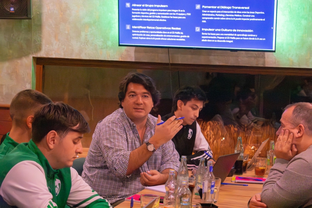 El proceso de transformación del CD Malilla cuenta también con el acompañamiento técnico de los expertos en Inteligencia Artificial Pablo Sala y Endika Alonso, que están colaborando en la implantación del plan y en la formación interna del equipo. Como parte de esta línea formativa, el pasado 14 de octubre tuvo lugar una primera sesión impartida por Pablo Sala, centrada en la aplicación práctica de la IA en la gestión deportiva.